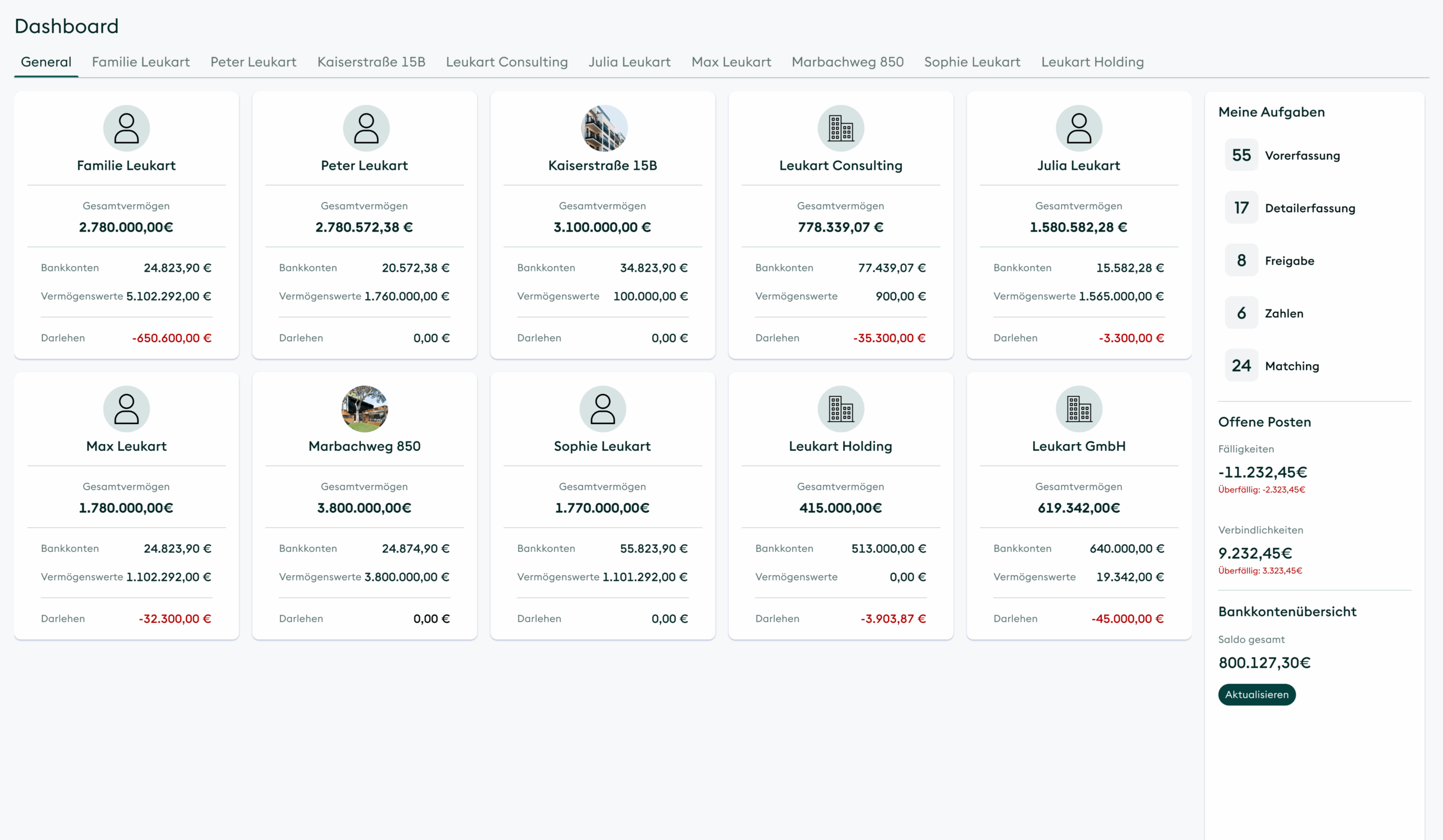 Ob Vermögen, Finanzen, Buchhaltung oder digitale Dokumente – Sie verwalten alles zentral und strukturiert an einem Ort.